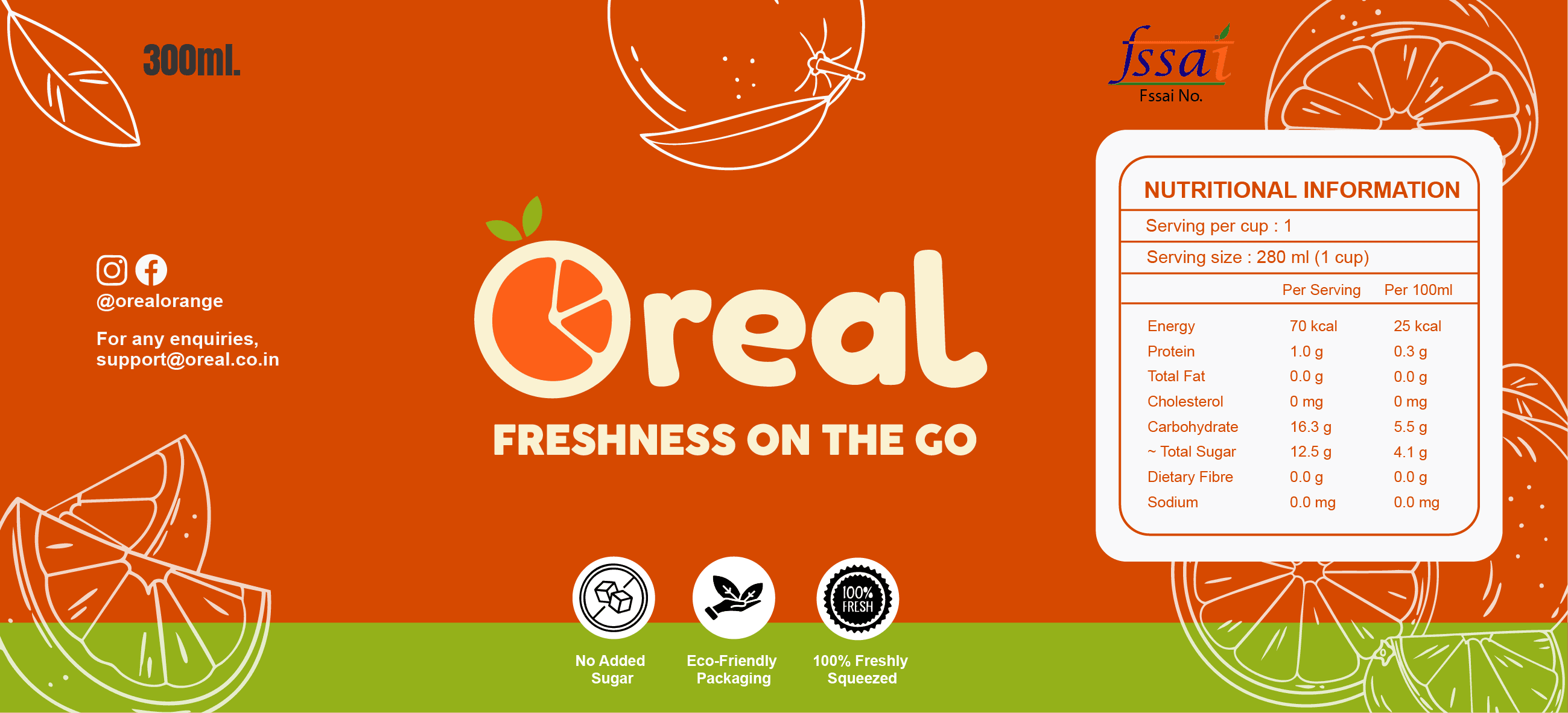 Branding and visual identity for a fresh orange juice vending concept focused on convenience and freshness.